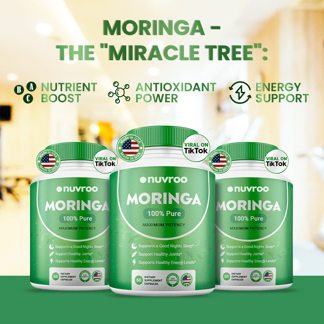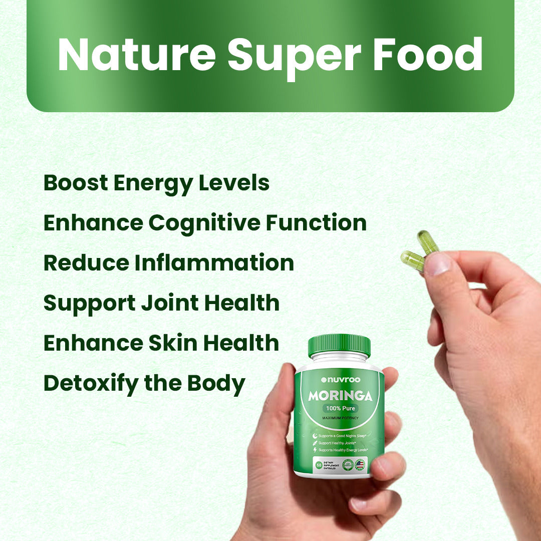 Each serving (two capsule) contains 800mg of Pure Nutrient-Rich Moringa Powder - A Natural Green Antioxidant Superfood. Our Moringa is passionately grown, ethically sourced, and produced with your health in mind.
